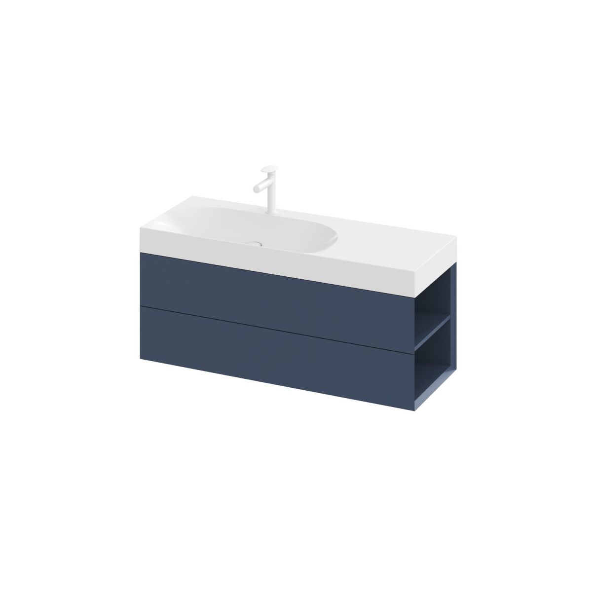 Waschbecken Lite 120/80 P mit Stauraum auf der rechten Seite. Das Waschbecken ist nicht mit einem Überlauf ausgestattet. Um ein Überlaufen zu verhindern, muss daher ein fester Waschbeckenständer verwendet werden. Das Waschbecken verfügt über eine vorgebohrte Öffnung für eine Standarmatur. Im Lieferumfang ist ein Montageset (Verbindungsdübel, Schrauben usw.) enthalten. Es kann an der Wand montiert oder mit einem Waschbeckenunterschrank SD Lite 120 oder SD Lite 120 P ergänzt werden.