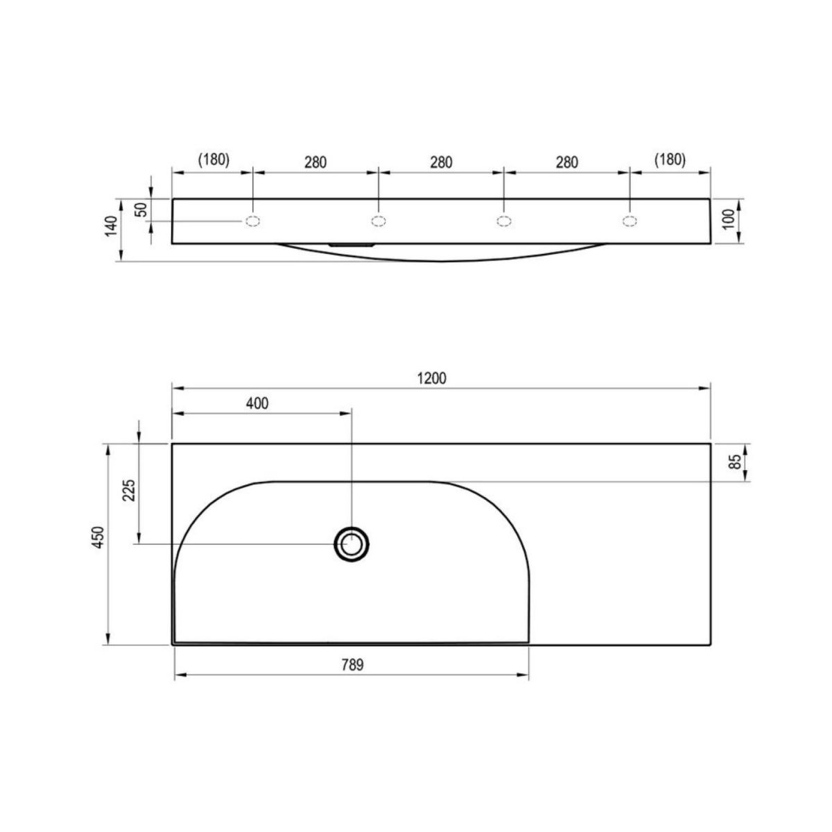 Waschbecken Lite 120/80 P mit Stauraum auf der rechten Seite. Das Waschbecken ist nicht mit einem Überlauf ausgestattet. Um ein Überlaufen zu verhindern, muss daher ein fester Waschbeckenständer verwendet werden. Das Waschbecken ist für die Kombination mit einer Unterputz-Waschtischarmatur vorgesehen. Im Lieferumfang ist ein Montageset (Verbindungsdübel, Schrauben usw.) enthalten. Es kann an der Wand montiert oder mit einem Waschbeckenunterschrank SD Lite 120 oder SD Lite 120 P ergänzt werden.