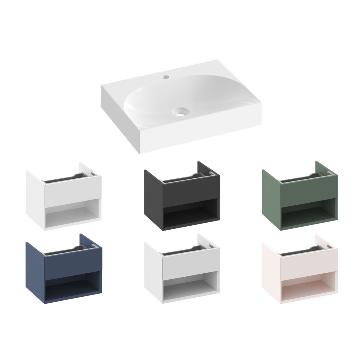 Zubehör im Handel erhältlich: fester Rahmen, Waschbeckensiphon, Waschbeckenarmatur, Waschbeckenschrank SD Lite 60