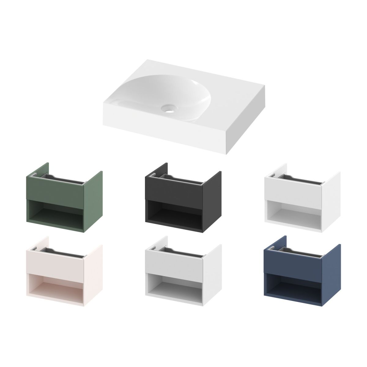 - Erhältliches Zubehör: feststehender Rahmen, Waschbeckensiphon, Unterputz-Waschbeckenarmatur, Waschbeckenunterschrank SD Lite 60