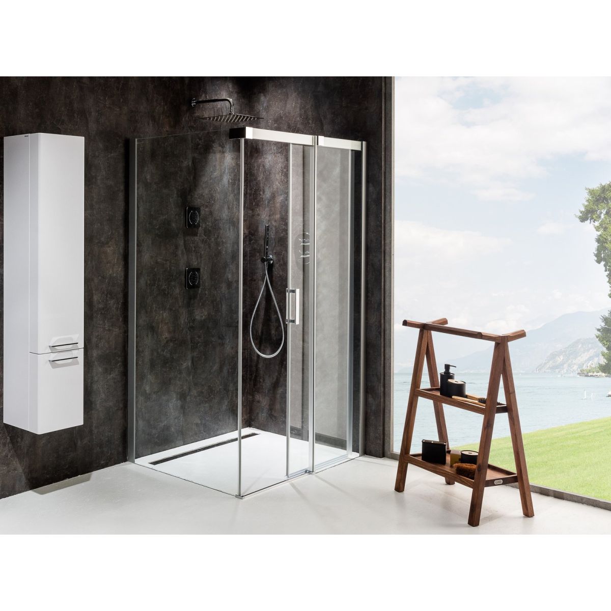 Hier finden Sie kein unteres Profil. Die Schwelle ist so niedrig, dass man nicht darüber stolpern kann. Die Dusche betont somit auch die Bodenfliesen.