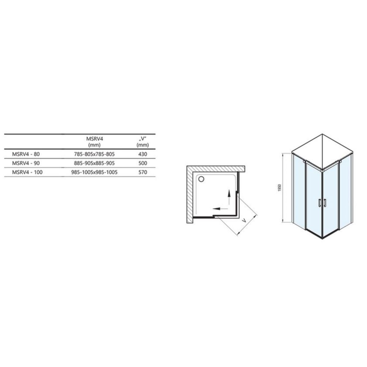 Ravak Matrix Dusche 80x80 cm quadratisch aluminium Glanz/durchsichtiges Glas 1WV44100Z1