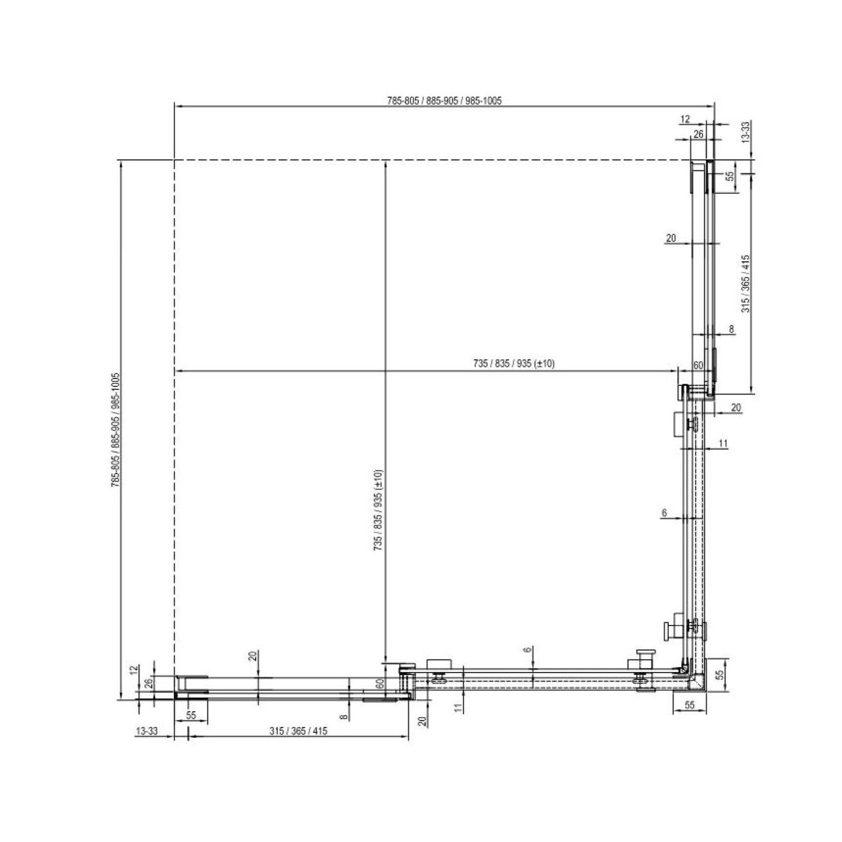 Ravak Matrix Dusche 90x90 cm quadratisch aluminium Glanz/durchsichtiges Glas 1WV44C00Z1