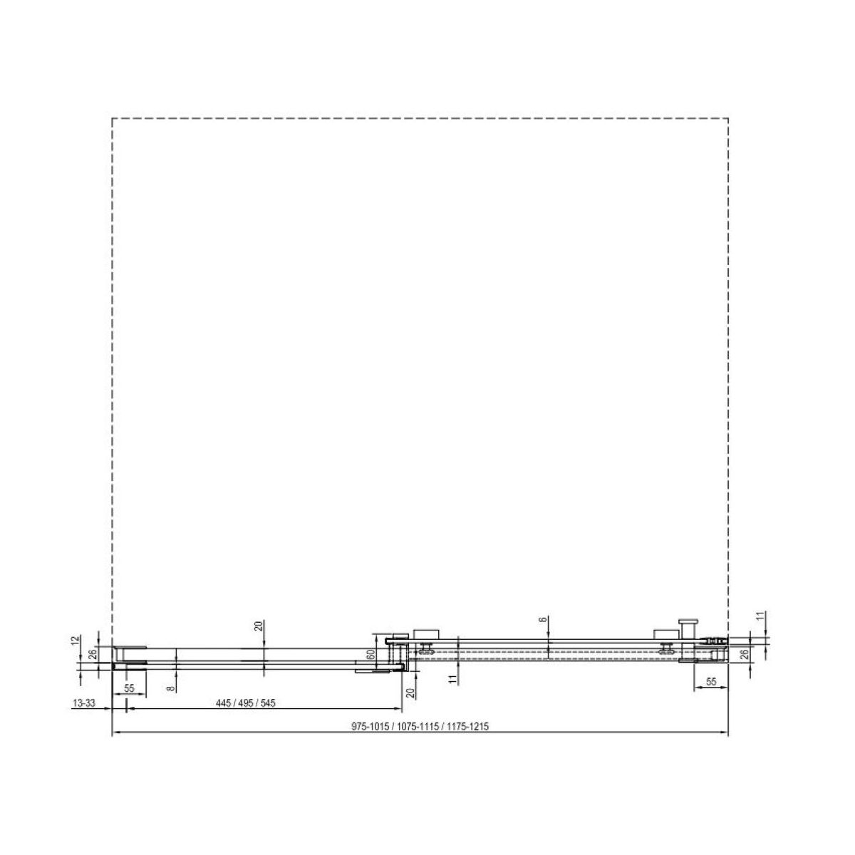 Das Produkt besteht aus zwei Teilen, von denen eines eine Schiebetür ist. Montage in einer Nische direkt auf dem Boden mit eingebautem Linienablauf oder Ablaufgitter.