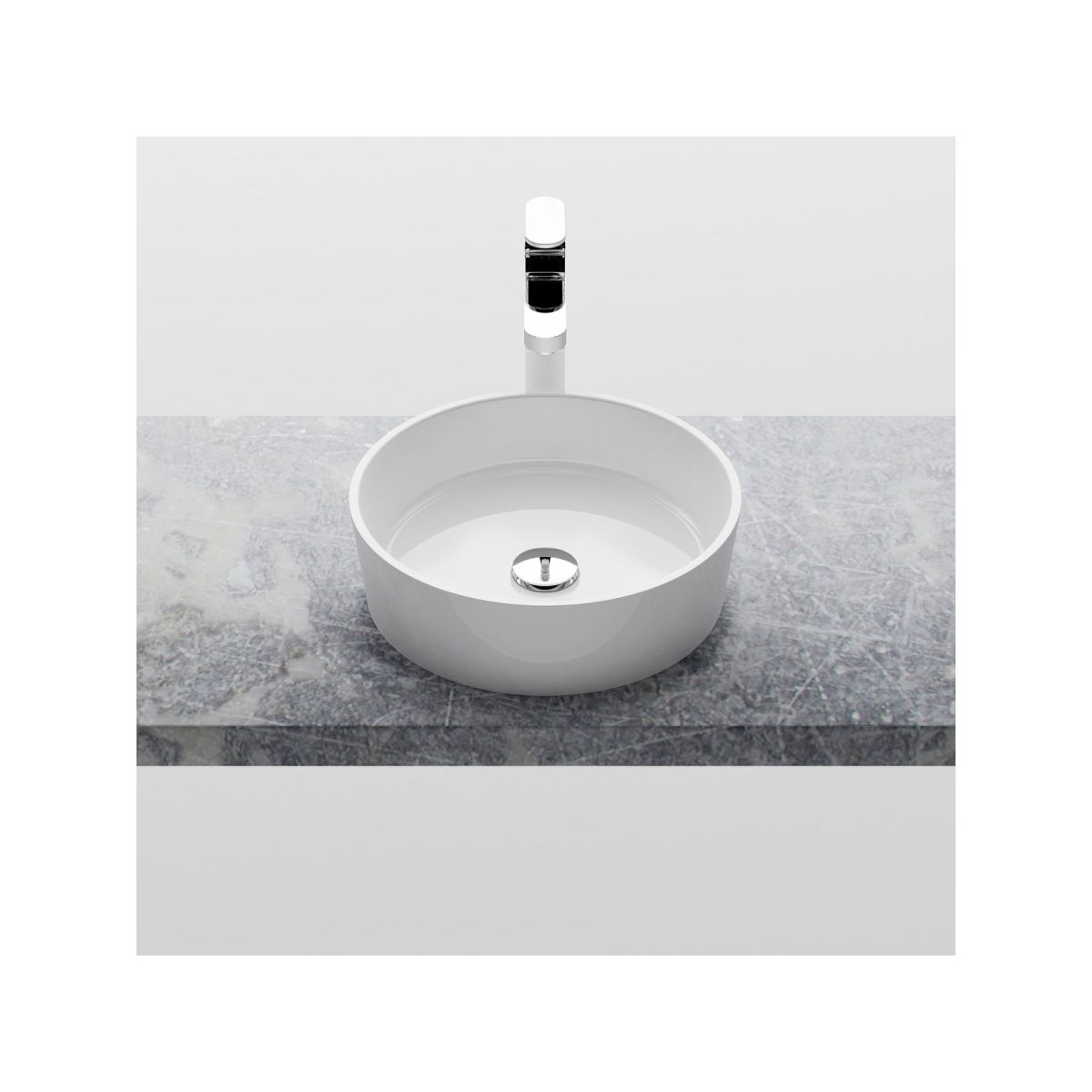 Waschbecken aus Marmorkonglomerat Moon für die Montage auf einer Arbeitsplatte oder einem Schrank, ohne Überlauf. Farbe: Weiß.