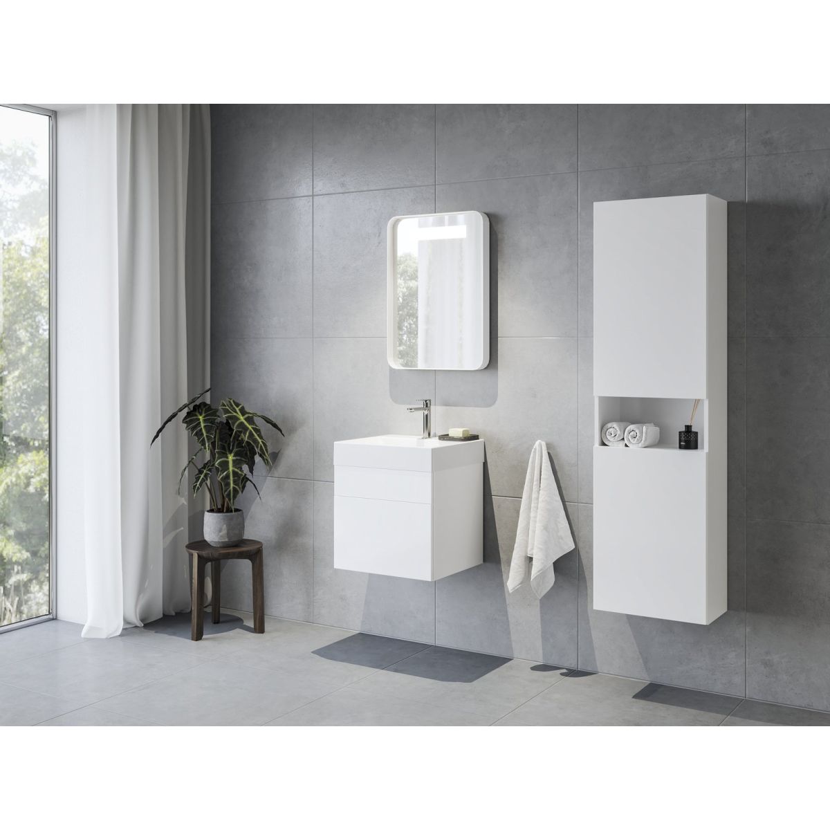 Der Waschtischunterschrank kombiniert Regale mit einer Schublade, in der Sie alles verstauen können, was nicht sichtbar sein soll. Kombinieren Sie ihn mit Hängeschränken, um Platz für alles zu haben, was Sie im Badezimmer griffbereit haben möchten.