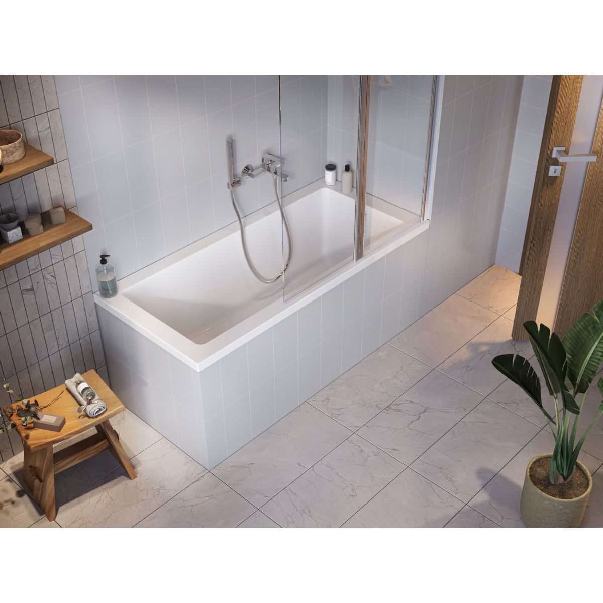 Möchten Sie in der Badewanne duschen? Natural eignet sich ideal für die sichere Nutzung als Duschkabine, da sie einen flachen Boden und gerade vertikale Seitenwände hat. Fügen Sie auf jeden Fall eine unserer Duschwände hinzu, damit kein Wasser nach außen spritzt.