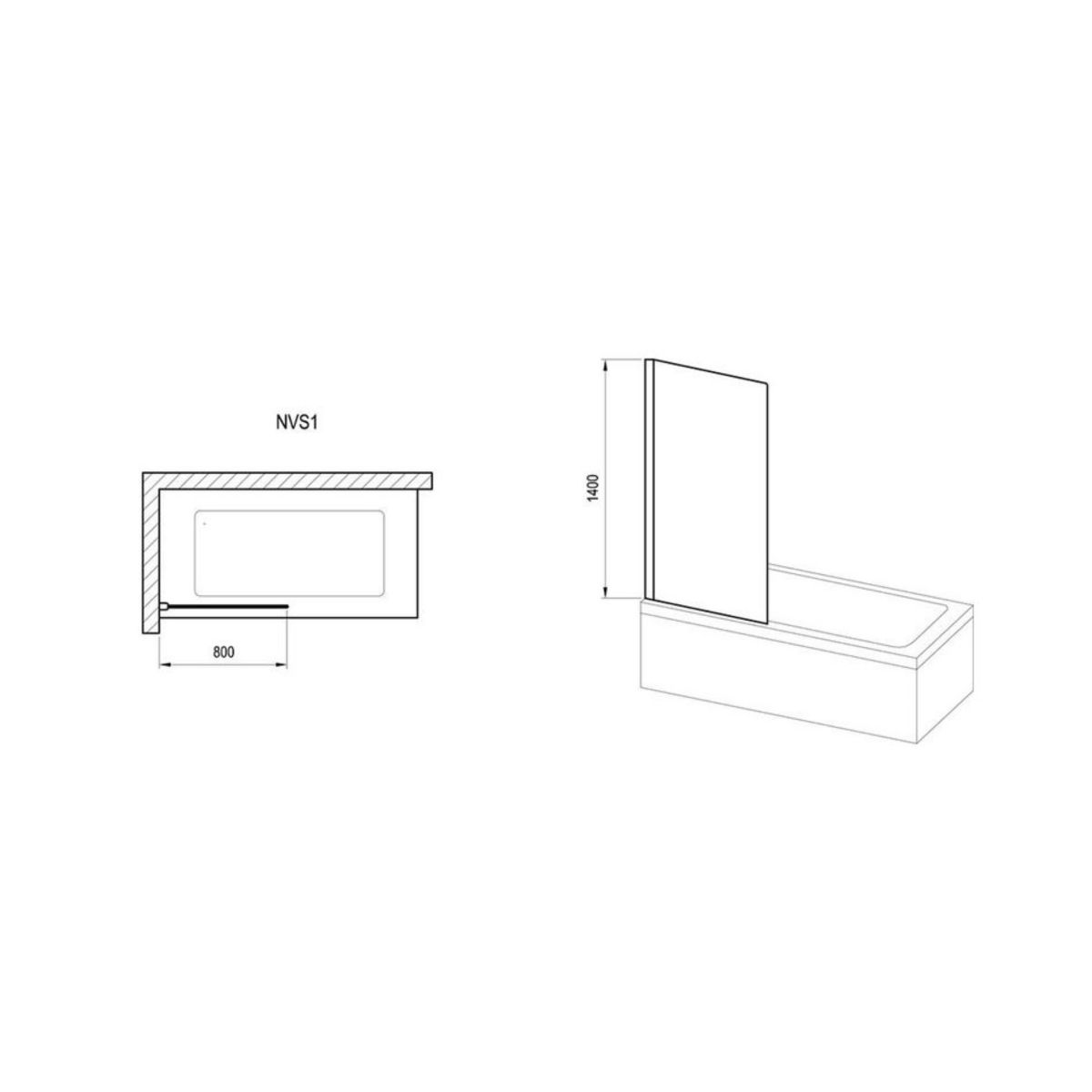Die Standardhöhe der Duschwand beträgt 1400 mm. Die Breite von 800 mm bietet ausreichend Platz für ein komfortables Duscherlebnis.