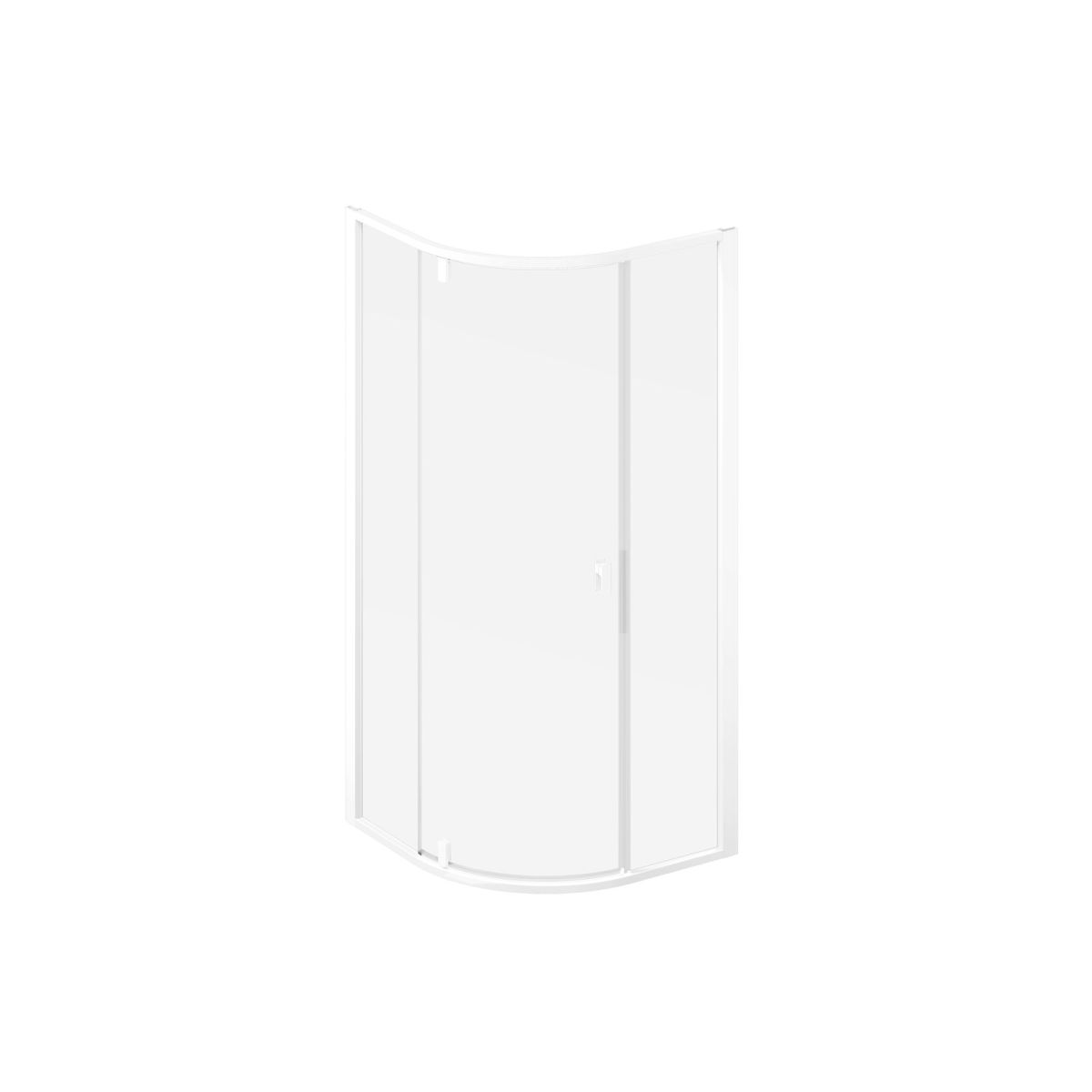 Dreiteilige halbrunde Duschkabine Nexty in mattweißer Ausführung mit transparenter Glasfüllung und Ravak AntiCalc®-Schutzbeschichtung. Öffnungssystem: Drehscharnier. Das Produkt ist nicht in einer rechten und linken Version erhältlich.