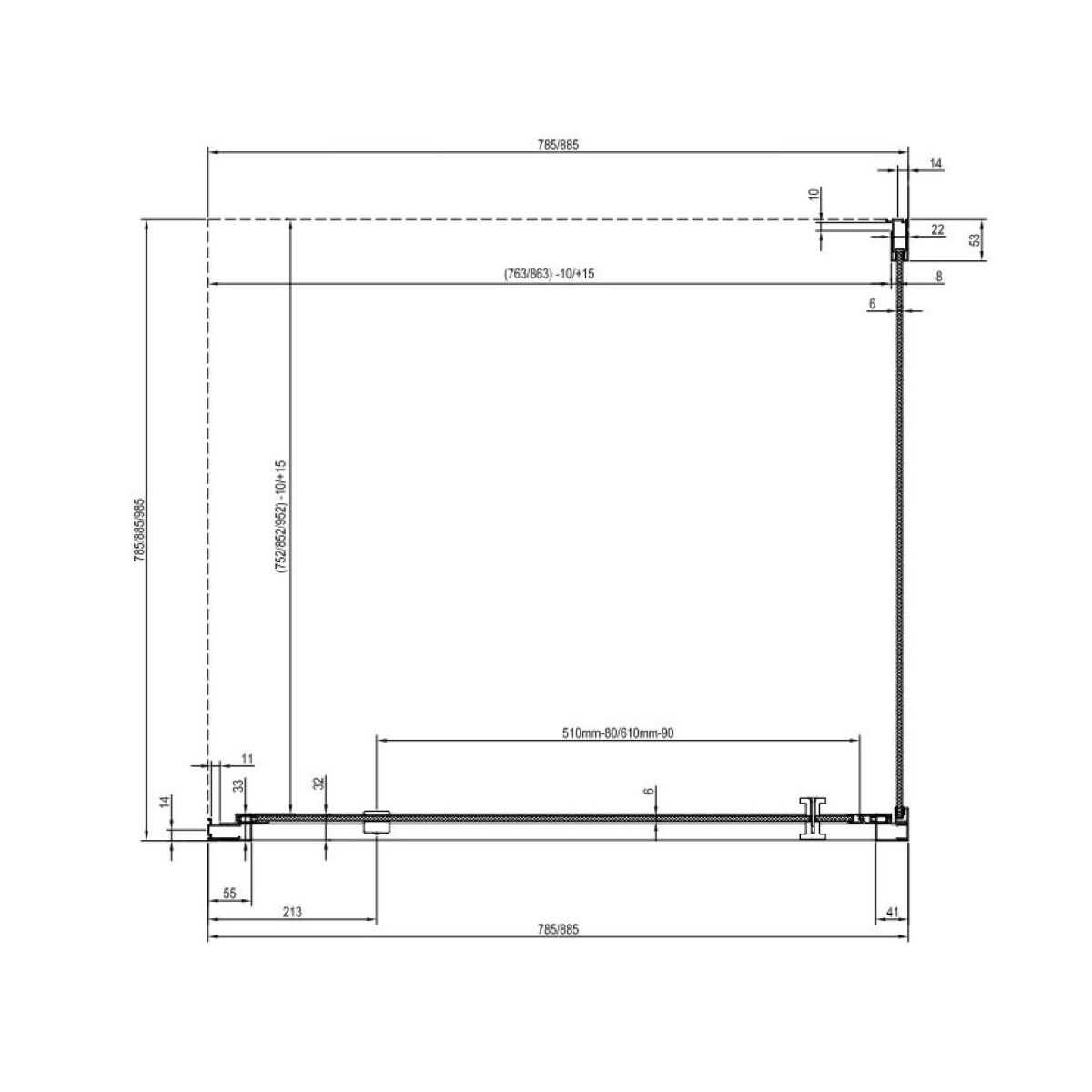 Kleine Ungenauigkeiten beim Bau? Keine Sorge – Nexty hat die Lösung. Dank seiner Montage- und Einstellprofile lässt sich die Duschkabine auf jeder Seite um bis zu 50 Millimeter verstellen.