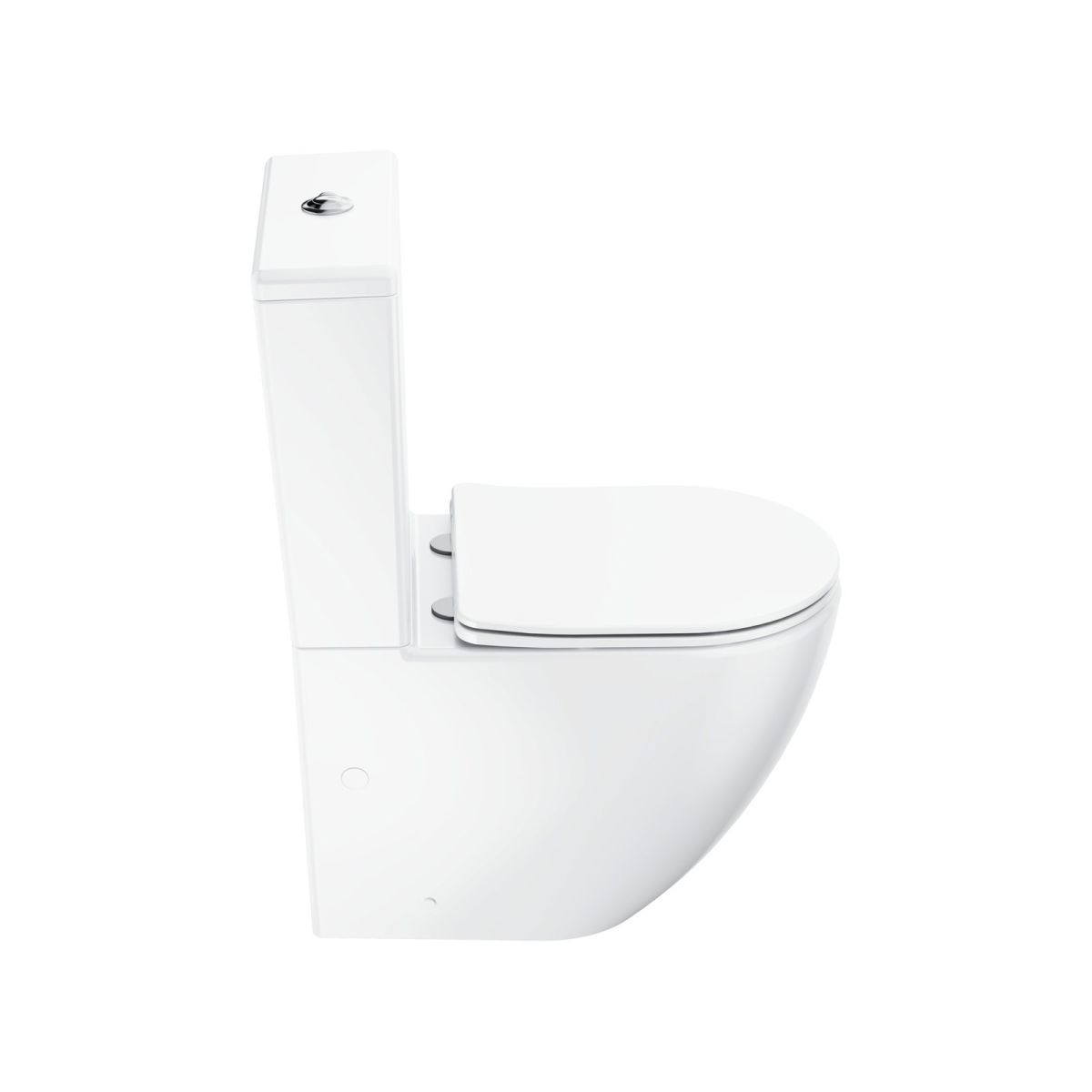 Freistehendes WC-Set Combi Optima RimOff mit SoftClose-Softclose-System. In weißer Ausführung. Vario-Ablauf.