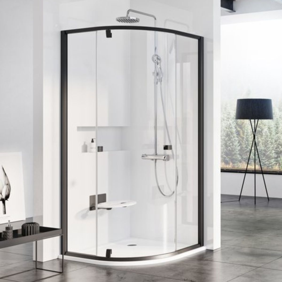 Ravak Pivot Dusche 80x80 cm halbrund schwarz Matte/durchsichtiges Glas 37644300Z1