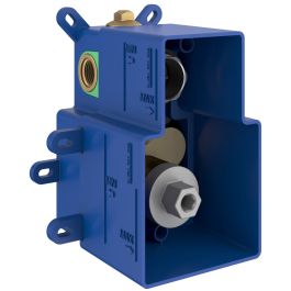 R-box ist ein universelles Installationssystem für Zwei- und Dreiweg-Unterputzarmaturen, das in die Wand eingebaut wird. Der untere Teil der Armatur, der in die R-Box integriert ist, besteht ebenso wie der obere Teil der Armatur aus hochwertigem Messing. Im Gegensatz zu klassischen Unterputzarmaturen ist die Montage in der R-Box wesentlich einfacher, ebenso wie ein eventueller Austausch des oberen sichtbaren Teils. Der äußere Teil der Zwei- oder Dreiwege-Unterputzarmatur der Serien Espirit oder Eleganta wird erst nach der vollständigen Fertigstellung des Badezimmers montiert, sodass Sie sicher sein können, dass die Armatur vor dem endgültigen Abschluss der Bauarbeiten nicht beschädigt wird.