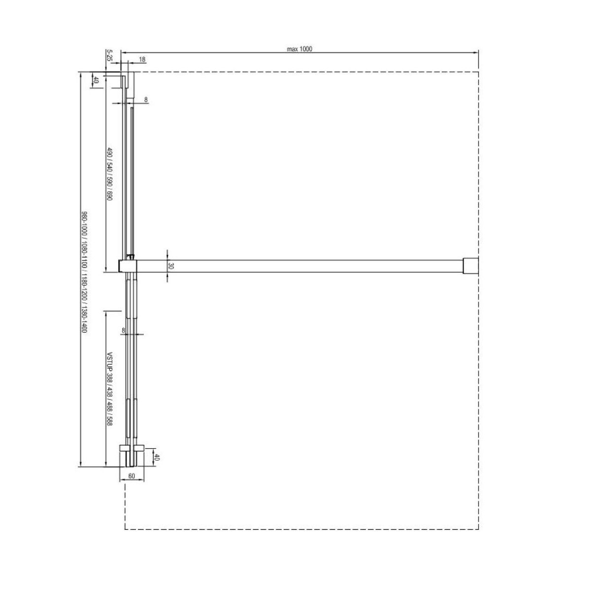 Die zweiteilige Walk-In-Duschkabine ROWI besteht aus einem Befestigungsprofil und einer Duschkonstruktion mit festem und beweglichem Teil. Der bewegliche Teil wird mithilfe von Rollen in der unteren Führung bewegt. Die Stabilität des Produkts wird durch eine 100 cm lange Metallhalterung gewährleistet, die gekürzt werden kann, um die gewünschte Einstiegsbreite zu erzielen.