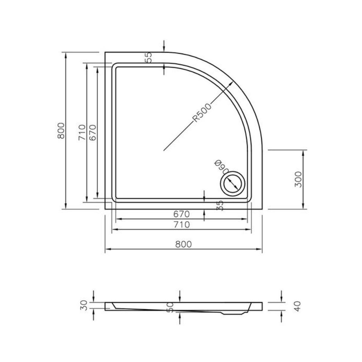 Die halbrunde Duschwanne Ronda Basic LA ist für die Installation auf Füßen oder zum Einlassen in den Boden vorgesehen. Hergestellt aus weißem Acryl mit einer AntiBac®-Schutzschicht.