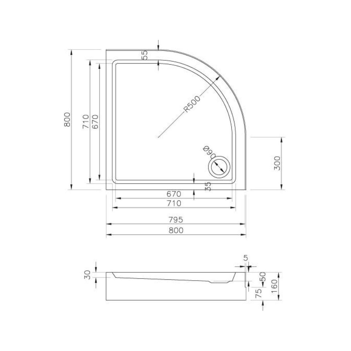 Halbrunde, selbsttragende Duschwanne Ronda Basic KOMPAKT. Zusammen mit dem Gehäuse bilden sie eine untrennbare Einheit. Hergestellt aus weißem Acryl mit einer AntiBac®-Schutzschicht.