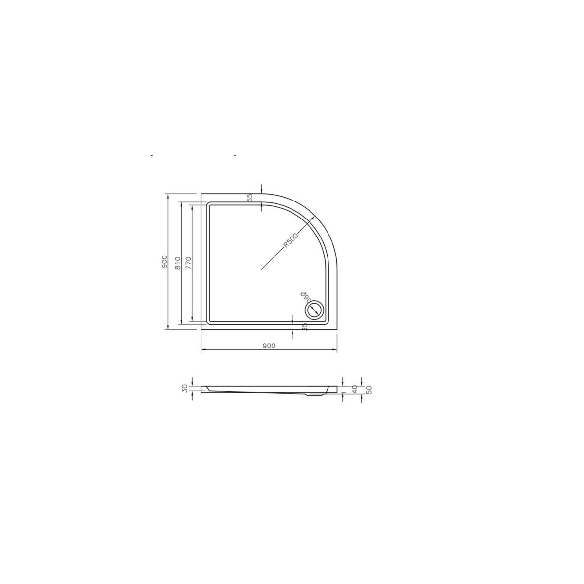 - Tiefe der Duschwanne: 5 cm