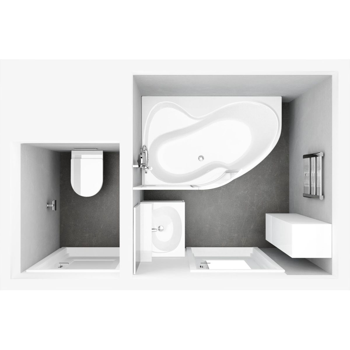 Rosa 95 ist eine kleine Eckbadewanne, die für Ihren Komfort entwickelt wurde. Sie passt praktisch in jedes Badezimmer. So können Sie jederzeit ein herrliches Bad oder eine schnelle Dusche genießen. Sie tun einfach das, worauf Sie gerade Lust haben. Linke Variante.