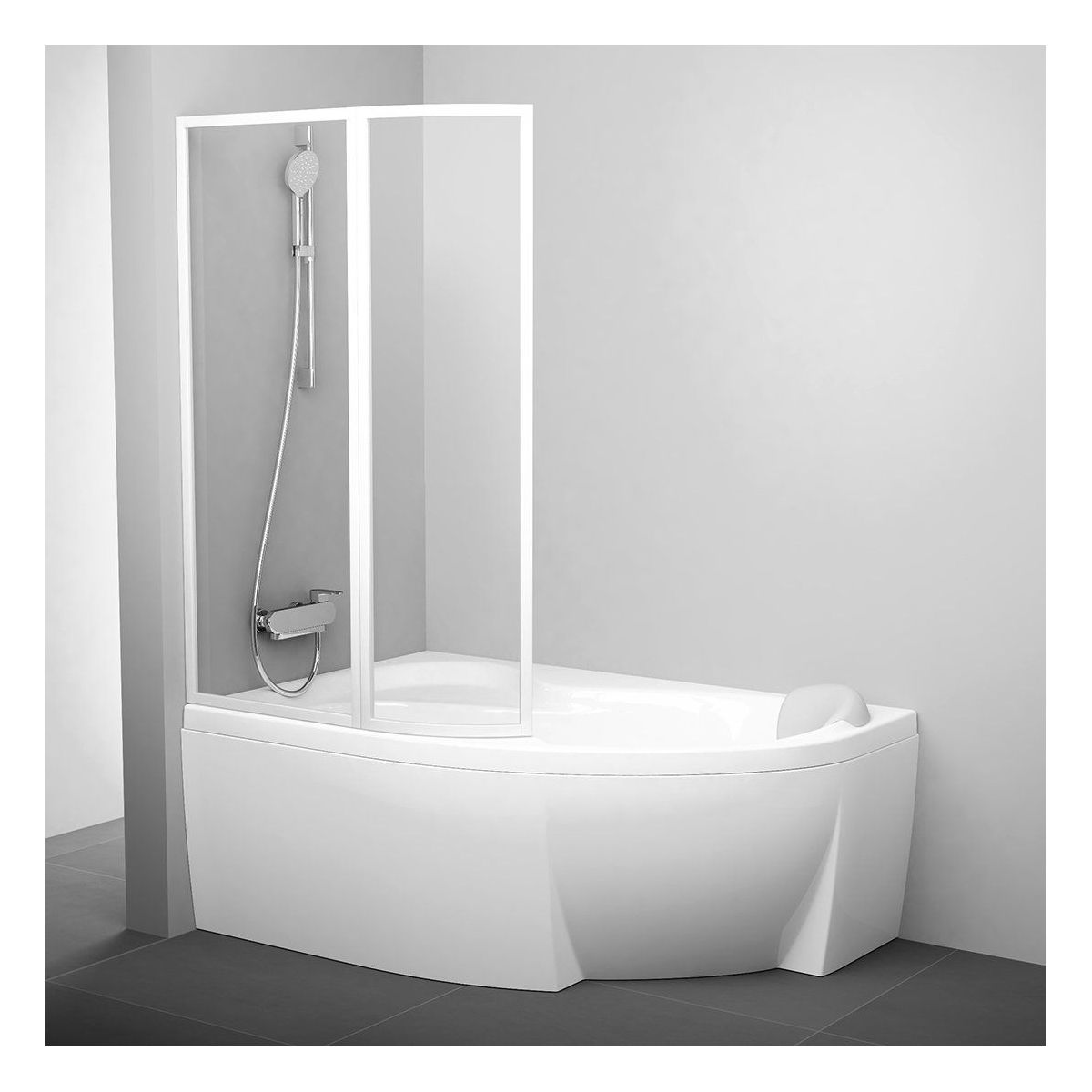 Ravak Rosa Badewannenabtrennung 93 cm zweigeteilt weiß Glanz/durchsichtiges Glas 76L80100Z1