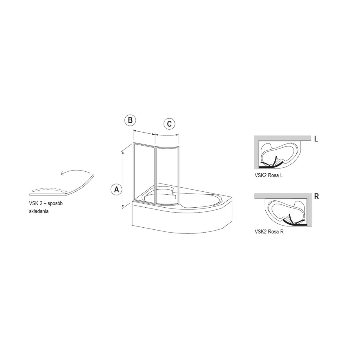Ravak Rosa Badewannenabtrennung 93 cm zweigeteilt weiß Glanz/durchsichtiges Glas 76P80100Z1