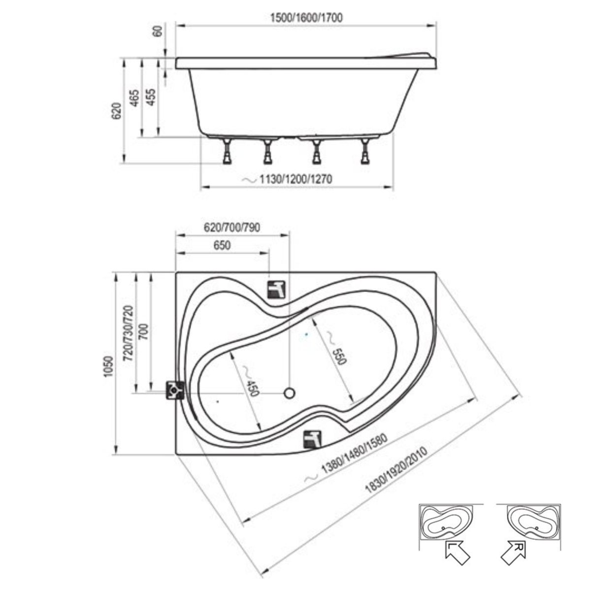 Ravak Rosa II Eckbadewanne 170x105 cm linksseitig weiß C221000000