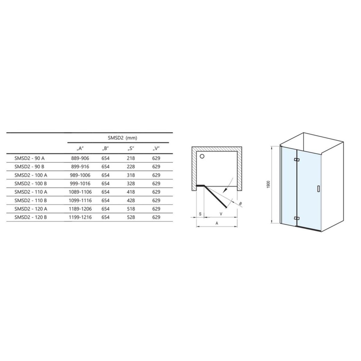 - Möglichkeit, die linke Tür SMSD2 B mit der linken festen Wand SMPS zu kombinieren (separat zu erwerben)