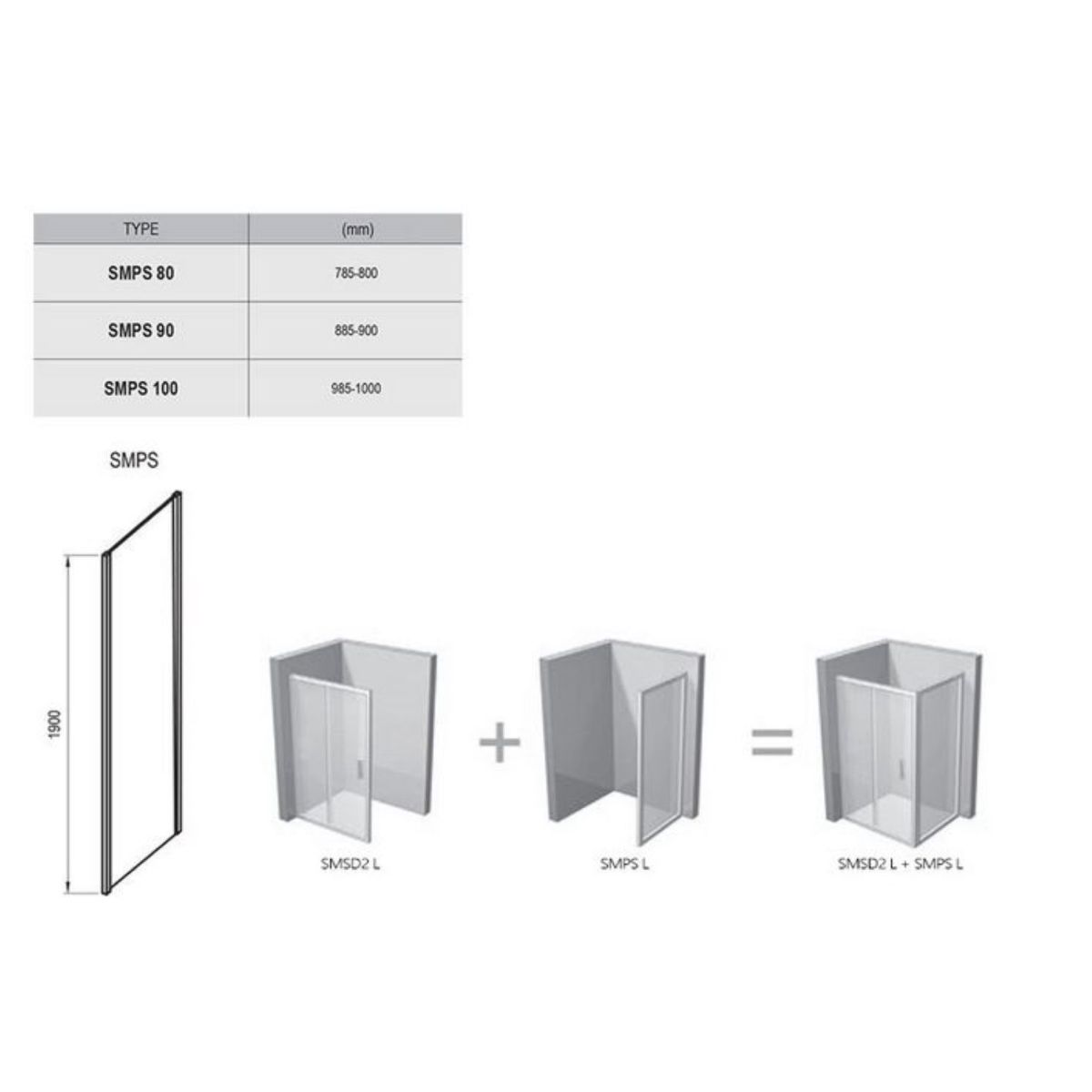 - Die linke Duschwand wird mit der linken Duschtür SMSD2 kombiniert
