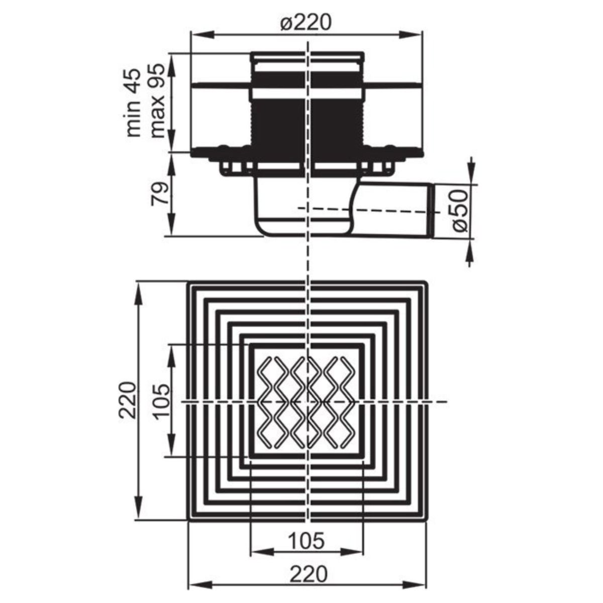 Geeignet für Duschkabinen, offene Badezimmer und Technikräume. Einbauhöhe 104 mm. Flansch aus Edelstahl und zweiter Flansch auf Isolierungsebene.