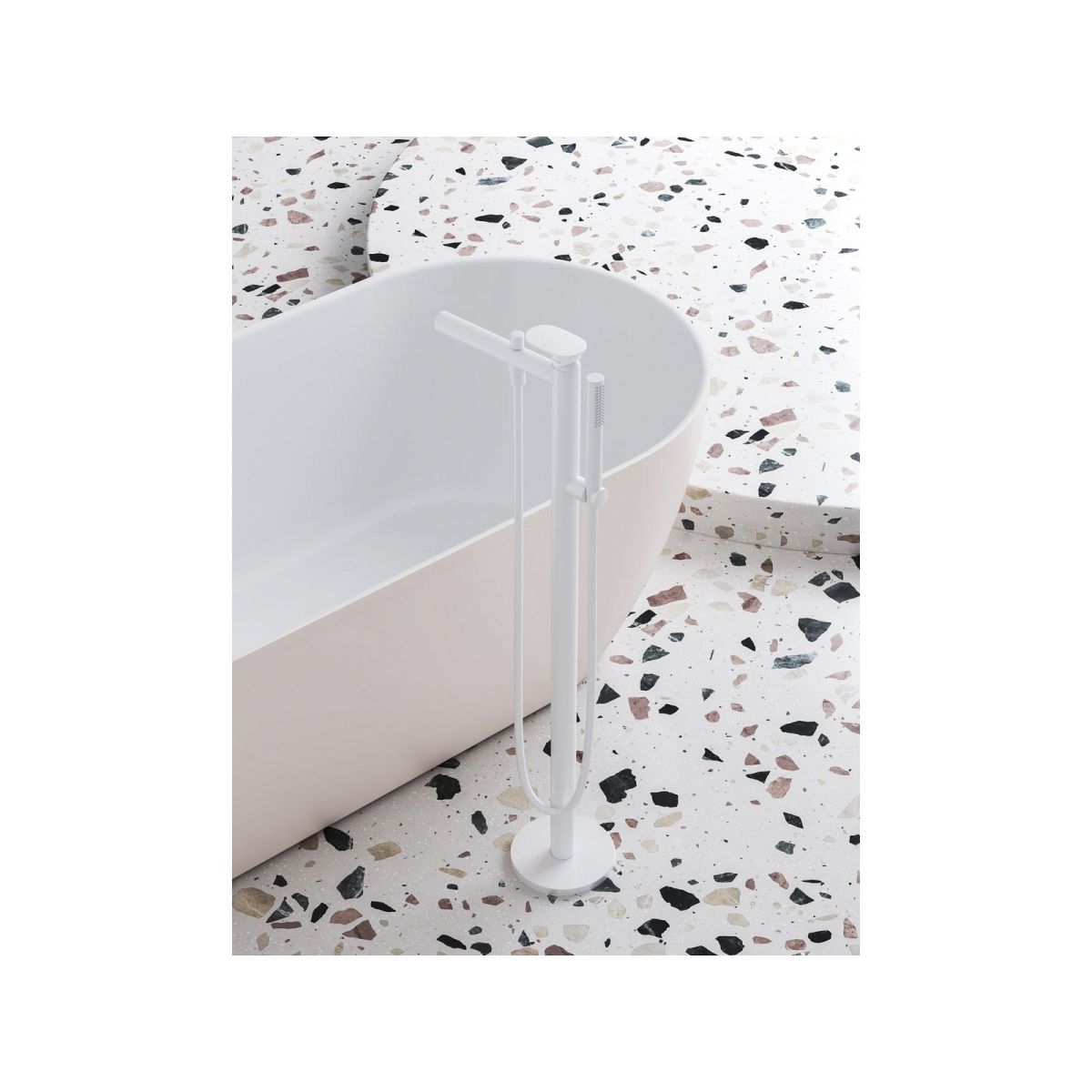 Spring Boden-Wannenarmatur mit Duschset. Für R-Box geeignet. In mattweißer Ausführung.