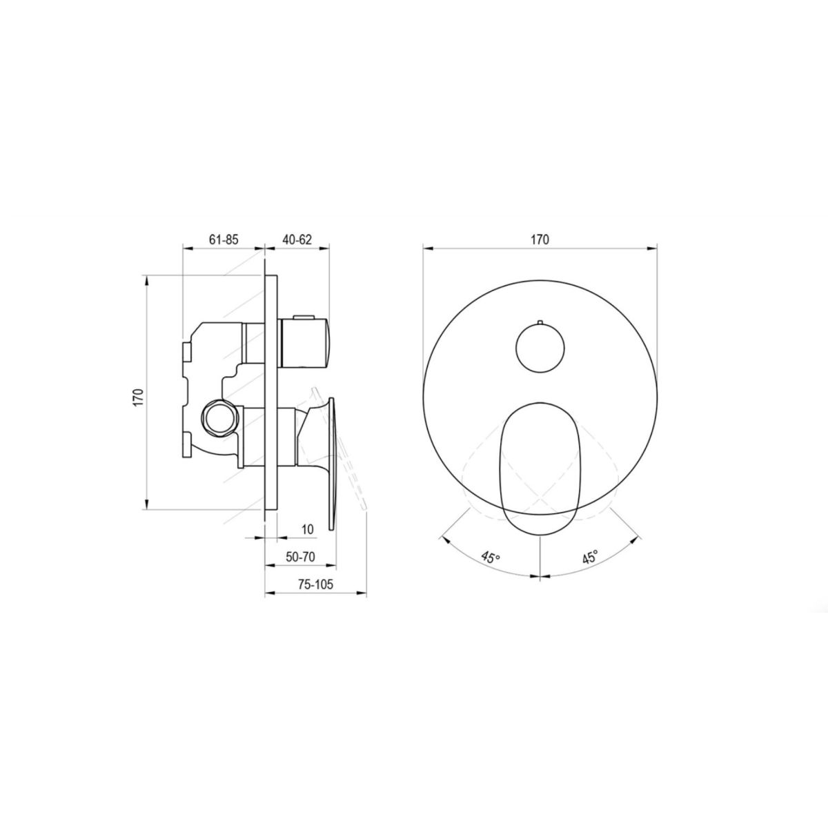 - Verwendung: für Badewannen mit Überlauf und Umstellung auf Handbrause oder für Duschkabinen mit Regendusche und Handbrause
