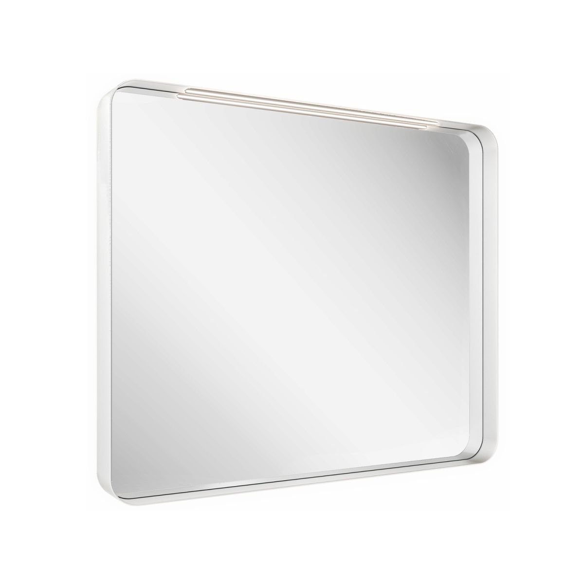 Rechteckiger Spiegel mit schmalem Rahmen in Weiß. Ausgestattet mit LED-Beleuchtung.