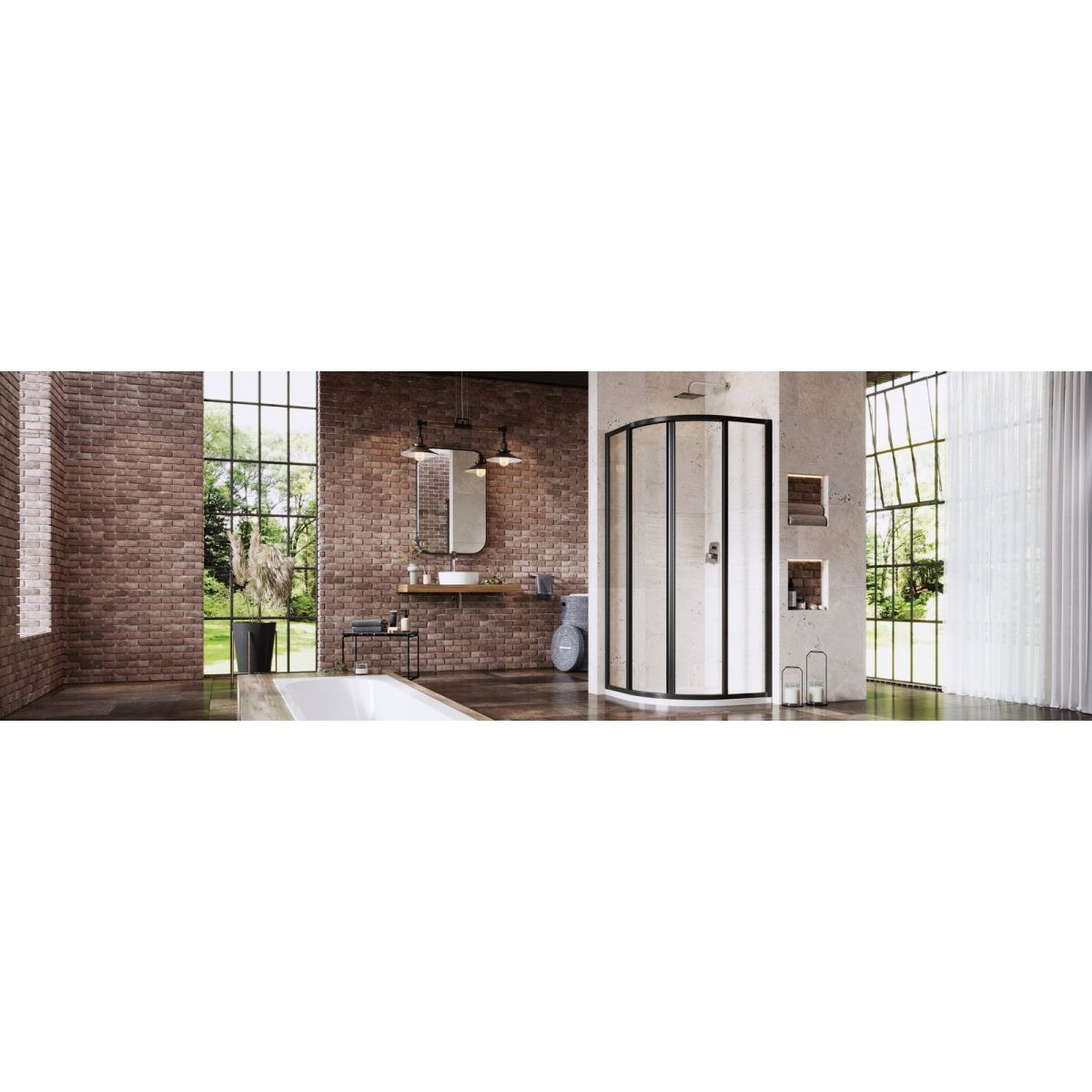 Vierteilige halbrunde Duschkabine Supernova in schwarzer Ausführung mit transparenter Glasfüllung und Ravak AntiCalc®-Schutzbeschichtung. Schiebeöffnungssystem.