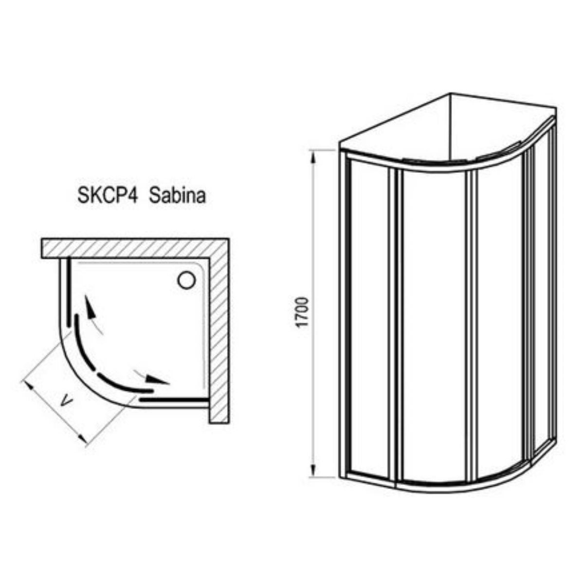 Das Produkt besteht aus zwei festen geraden und zwei gebogenen Elementen, die eine Schiebetür bilden. Montage in einer gefliesten Ecke des Badezimmers auf einer tiefen Duschwanne Sabina. Die Gesamthöhe der Kabine und der Duschwanne beträgt 2120 mm. Radius 500 mm. Das Produkt wird montiert geliefert, es muss nur an der Wand befestigt und abgedichtet werden. Die Montage des Produkts dauert nur eine Stunde und kann von einer Person durchgeführt werden.