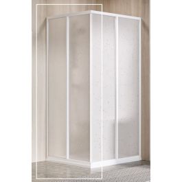 1/2 Eckduschkabine Supernova in Weiß mit Kunststofffüllung in Pearl-Optik. Schiebeöffnungssystem.
