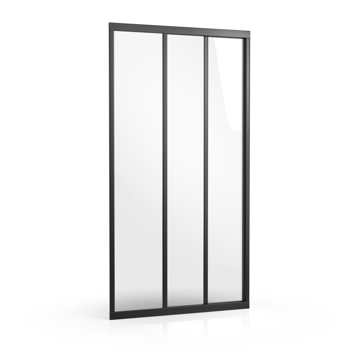 Dreiteilige Duschkabinentür Supernova in schwarzer Ausführung mit transparenter Glasfüllung und Ravak AntiCalc®-Schutzbeschichtung. Schiebesystem. Das Produkt ist nicht rechts- oder linksseitig erhältlich.