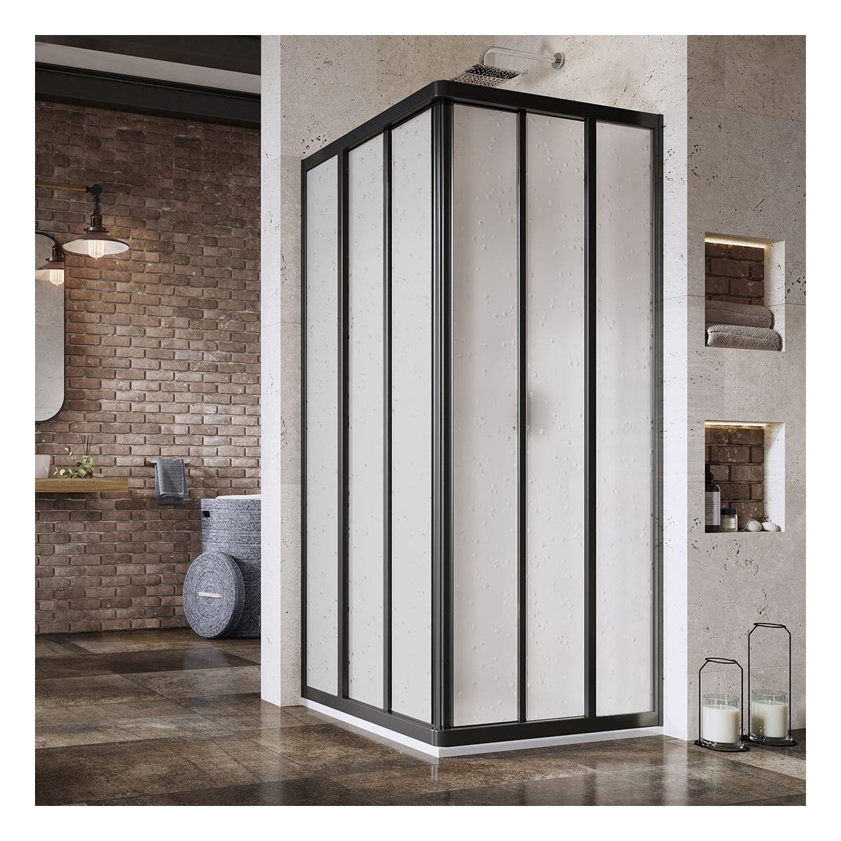 Ein Produkt bildet die Hälfte der Duschkabine. Um eine Eckduschkabine zu erstellen, werden zwei Stück Schiebetüren ASRV3 benötigt.