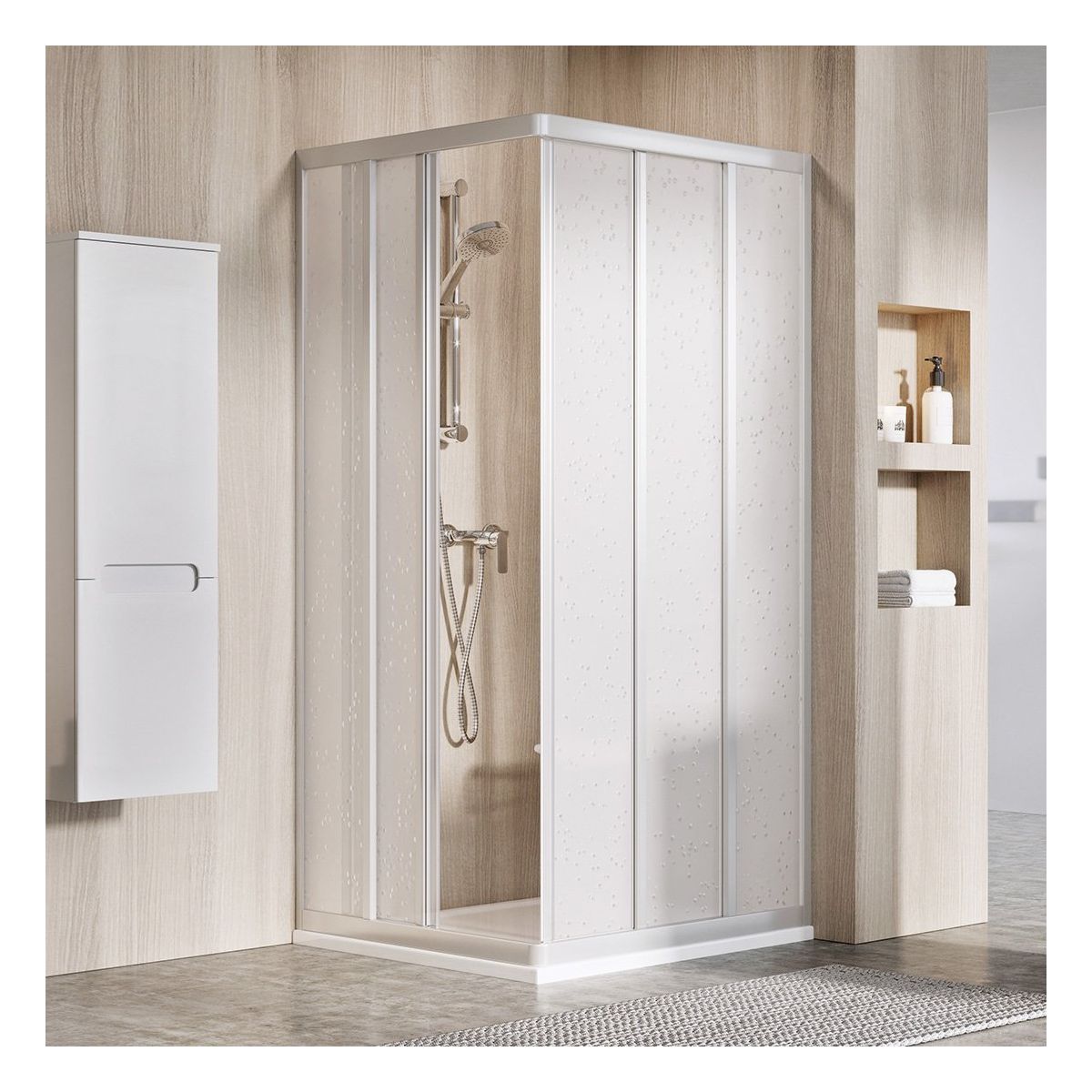 Ein Produkt bildet die Hälfte der Duschkabine. Um eine Eckduschkabine zu erstellen, werden zwei Stück Schiebetüren ASRV3 benötigt.