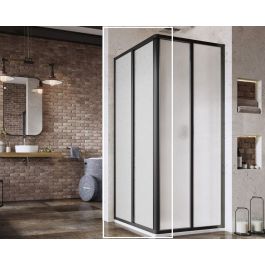 1/2 Eckduschkabine Supernova in schwarzer Ausführung mit Kunststofffüllung mit Pearl-Dekor. Schiebeöffnungssystem.