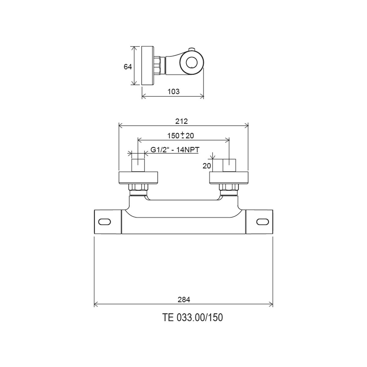 - Abstand zwischen den Armaturen: 150 mm