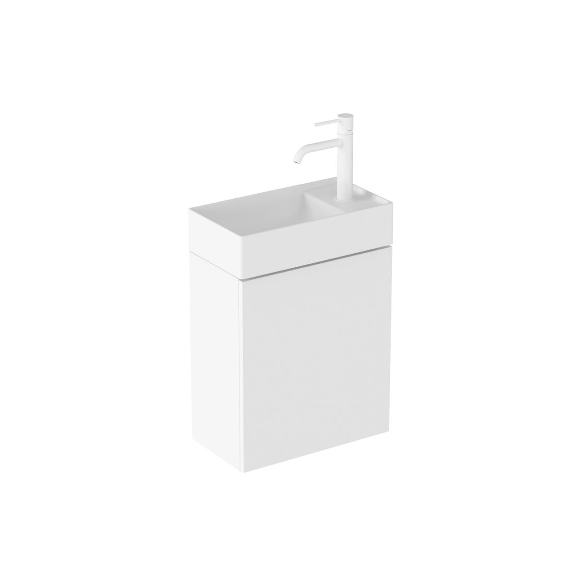 Das Waschbecken Veda Slim ist nicht mit einem Überlauf ausgestattet, daher müssen ein fester Waschbeckenstopfen und eine Waschbeckenarmatur verwendet werden. Es kann nicht separat an der Wand montiert werden, sondern nur mit dem Waschbeckenunterschrank SD Veda Slim 400. Die linke oder rechte Version erhält man durch Drehen des Produkts um 180° (je nach Position der Armatur). Das Montageset (Dübel, Schrauben usw.) ist im Lieferumfang des Unterschranks enthalten.
