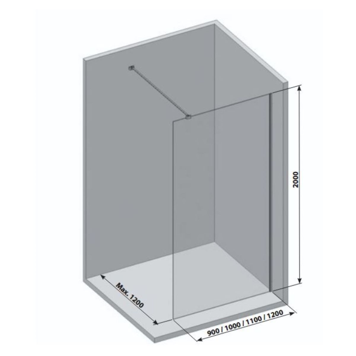 Die Walk-In Air Wall Duschwand besteht aus 6 mm starkem Hartglas. Die Stabilität des Produkts wird durch eine 120 cm lange Metallhalterung gewährleistet, die je nach gewünschter Eingangsbreite beliebig gekürzt werden kann.