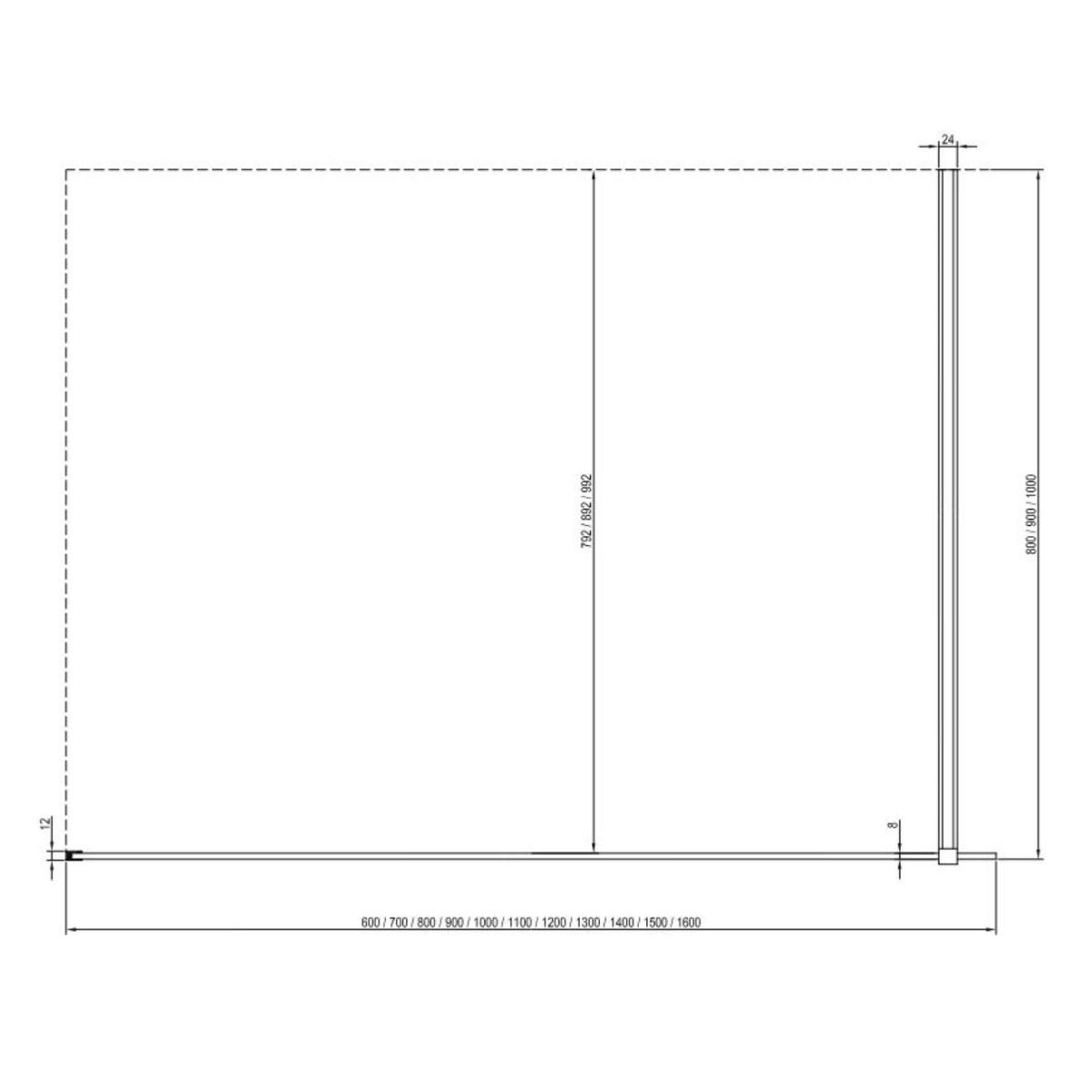 - Breite der feststehenden Glaswand Walk-In Wall: 160 cm