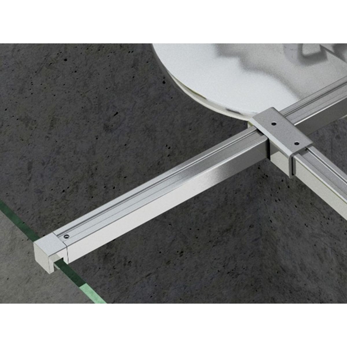Metallverbinder in glänzendem Chrom. Dient zur Verbindung der Halterungen in der Walk-In Double Wall-Duschkabine. Die Halterung stützt die Seitenfläche der Walk-In Double Wall-Kabine und sorgt für die Stabilität der gesamten Kabine. Die Länge der Halterung beträgt 120 cm und kann gekürzt werden. Im Uni T-Set bestimmt sie die Breite des Eingangs zur Kabine.