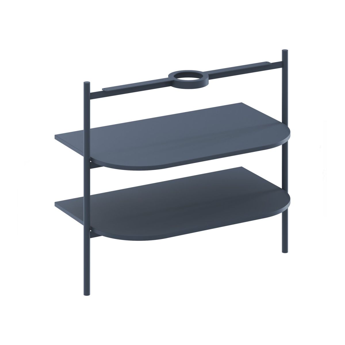 Stehende Metallkonstruktion mit Regalen CS Yard 80 zur Montage des Waschbeckens Yard 80. In der Ausführung Deepsea Blue.