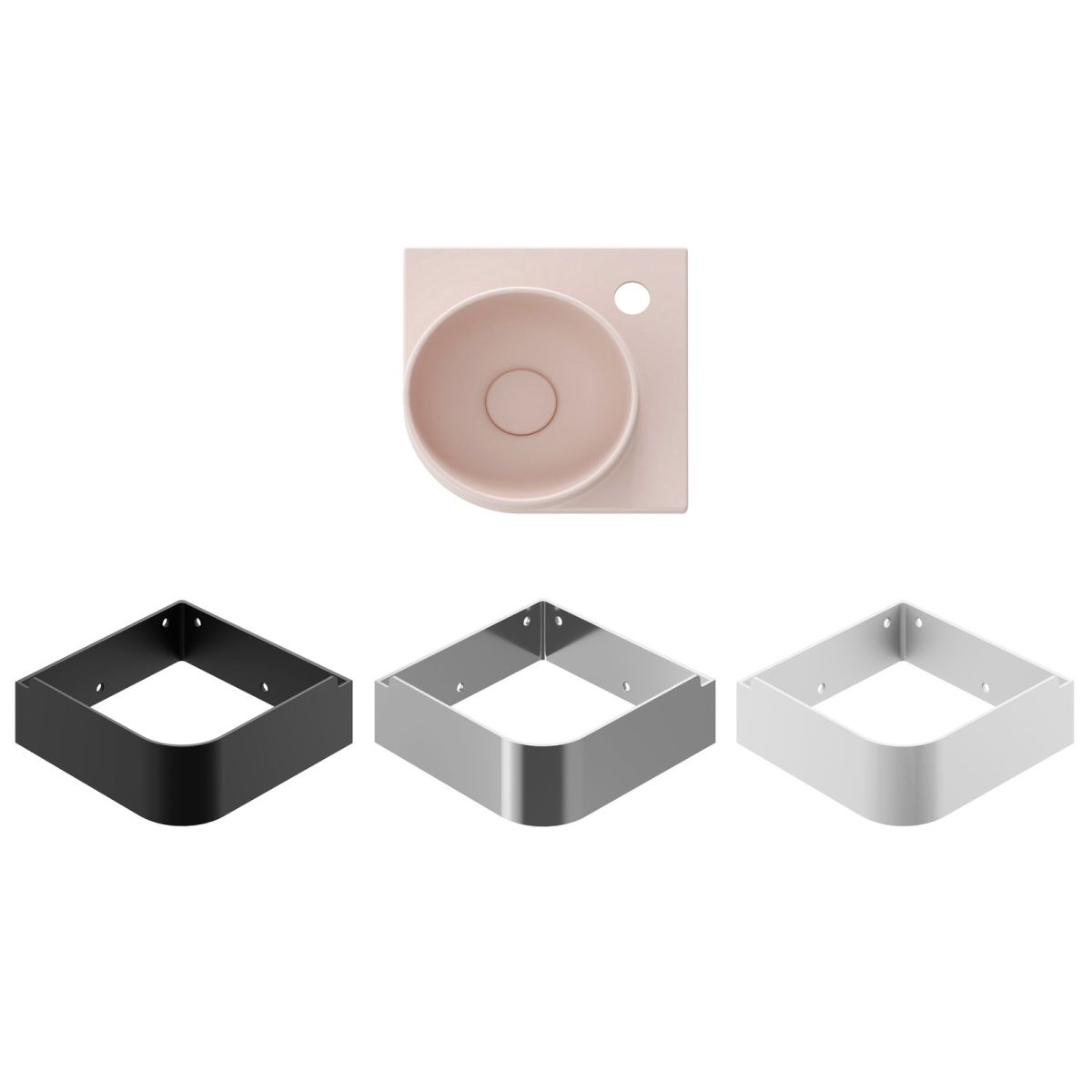 Das dünnwandige Eckwaschbecken Yard ist für die Montage auf der Yard-Konsole oder auf einer Arbeitsplatte ohne Überlauf vorgesehen. Farbe: Alabaster Pink. Mit Loch für Wasserhahn.