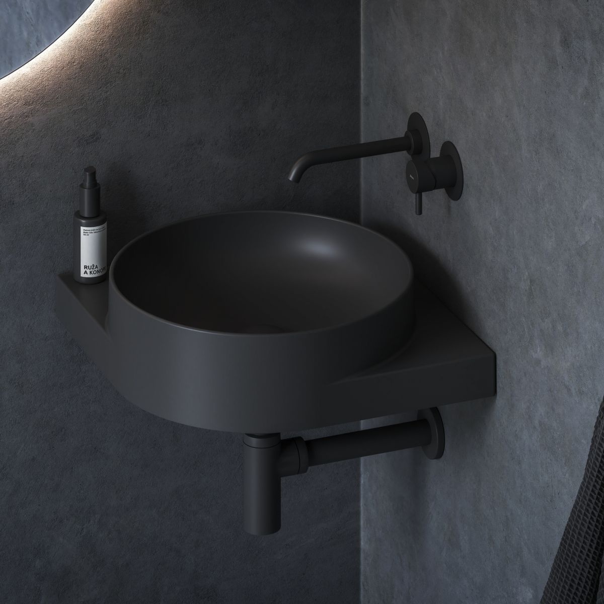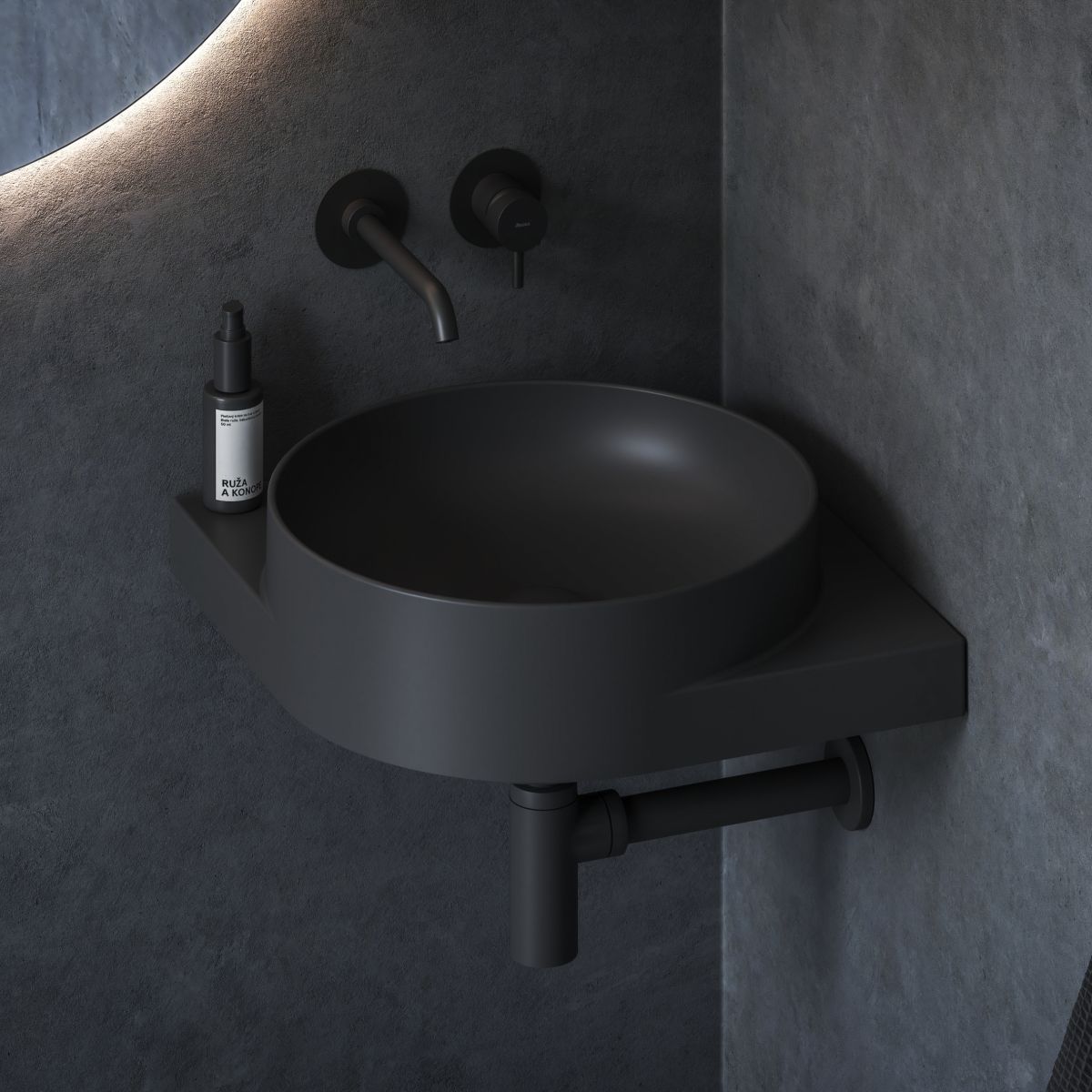 - Zubehör zum Nachkauf: Konsole Yard 45 C, fester Waschbeckenstopfen, offener Waschbeckenstopfen Flat fest schwarz matt, Waschbecken-Siphon, Unterputz-Waschbeckenarmatur