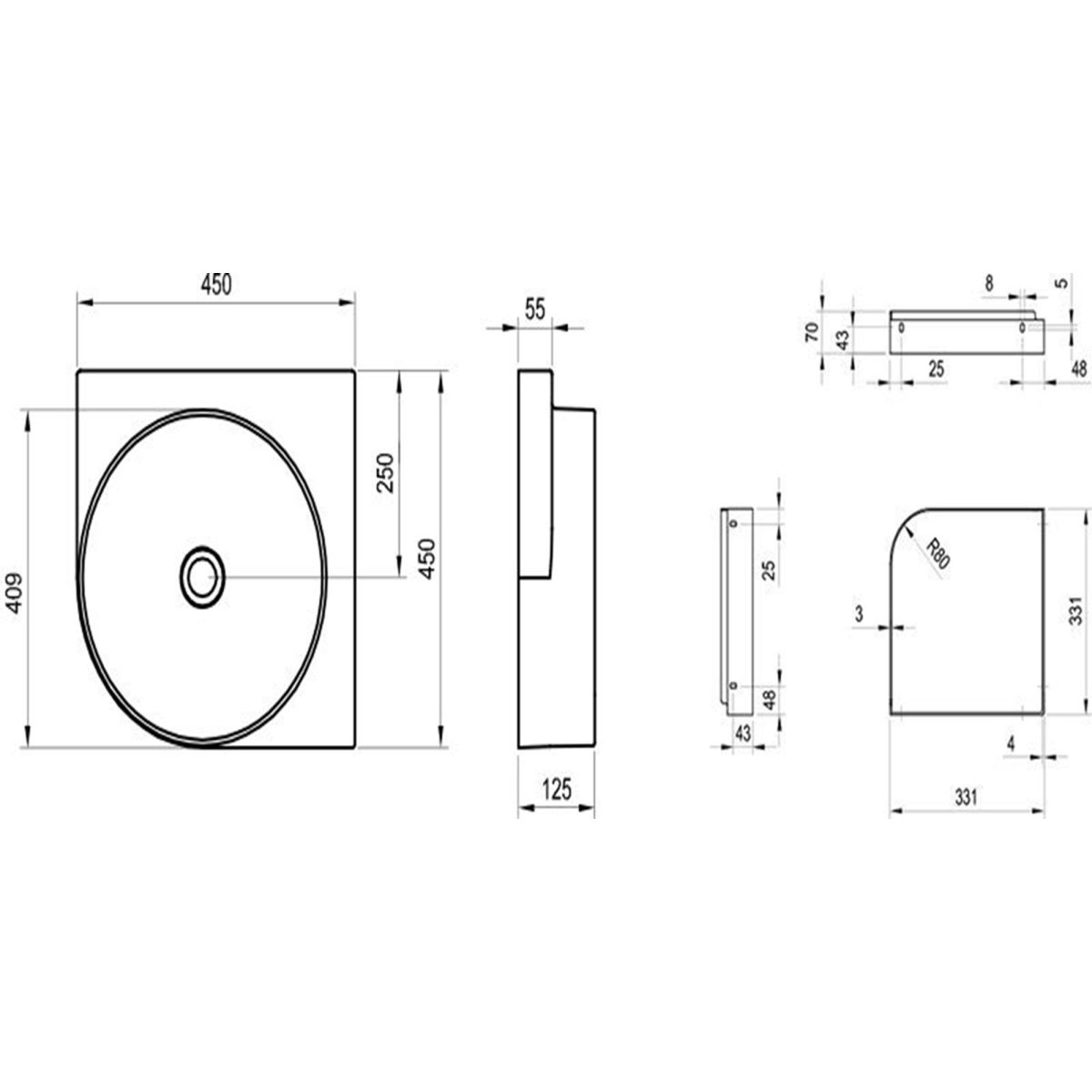 Das Waschbecken Yard 450 ist aus hochwertiger Keramik gefertigt und für die Montage auf der Konsole Yard 450 vorgesehen. Das Waschbecken kann nicht selbstständig an der Wand befestigt werden. Das Waschbecken muss mit einem festen Waschbeckenstopfen kombiniert werden, der ein Überlaufen des Wassers verhindert.