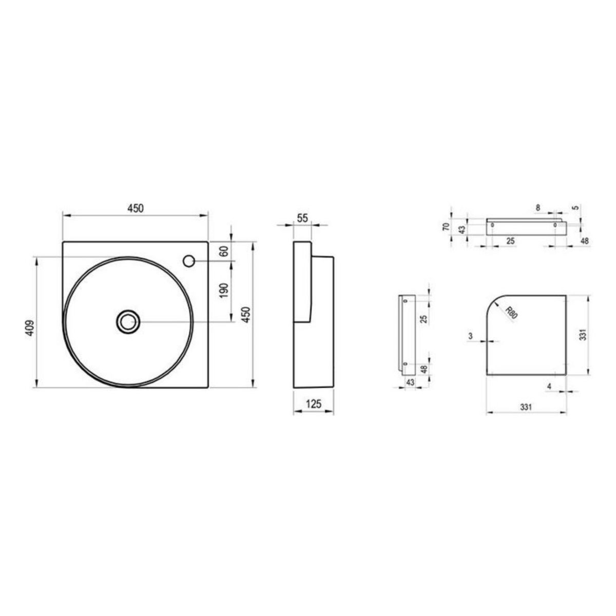 Das Waschbecken Yard 45 C ist aus hochwertiger Keramik gefertigt und für die Montage auf der Konsole Yard 45 C vorgesehen. Das Waschbecken kann nicht selbstständig an der Wand befestigt werden. Das Waschbecken muss mit einem festen Waschbeckenstopfen kombiniert werden, der ein Überlaufen des Wassers verhindert.