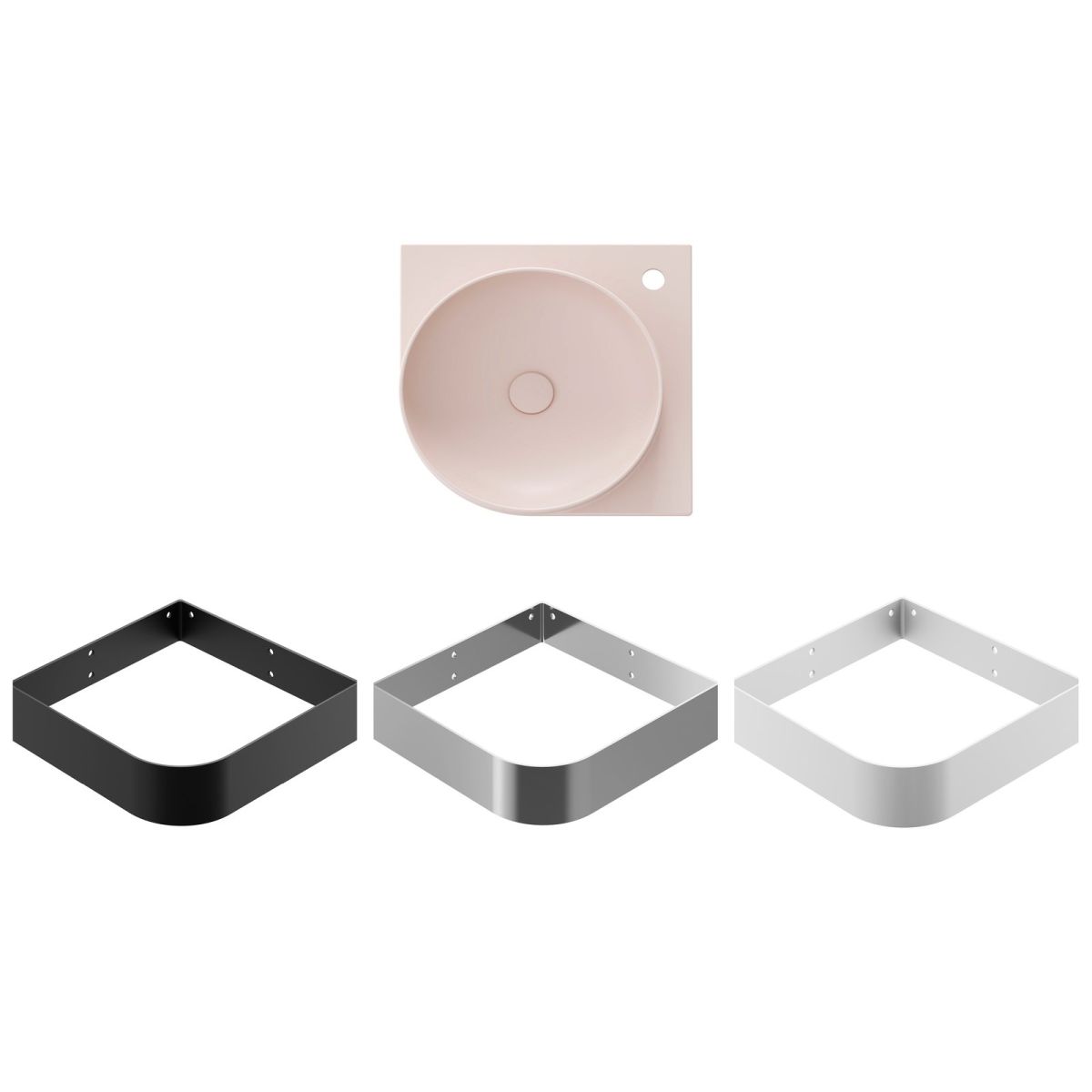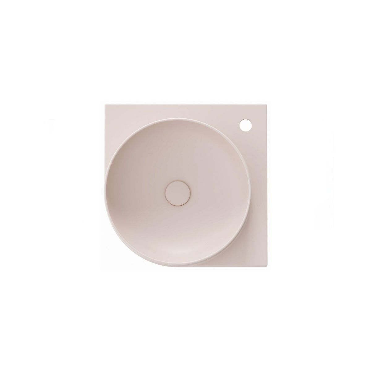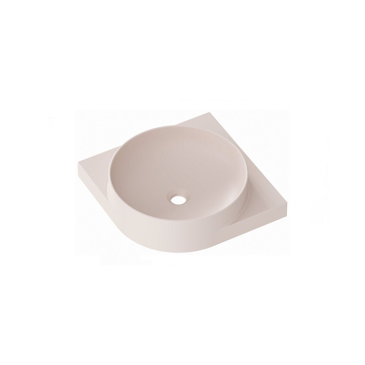 Das dünnwandige Eckwaschbecken Yard ist für die Montage auf der Yard-Konsole oder auf einer Arbeitsplatte ohne Überlauf vorgesehen. Farbe: Alabaster Pink. Mit Loch für Wasserhahn.