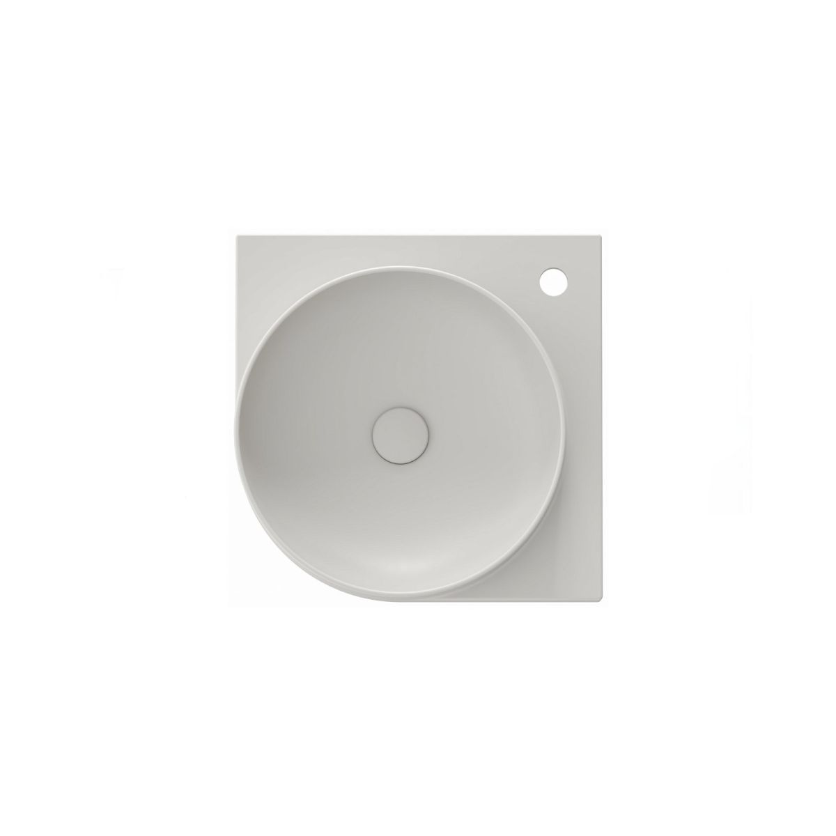 Das dünnwandige Eckwaschbecken Yard ist für die Montage auf der Yard-Konsole oder auf einer Arbeitsplatte ohne Überlauf vorgesehen. Farbe: Smoke Grey. Mit Loch für Wasserhahn.